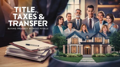 Introduction You may ensure that you make home purchases an exciting and stressful experience. There will be lot of hurdles in case you do not verify taxes, title and legal matters. You may find this article helpful to make your way in the title transfer. You will understand what is the property taxes. You will know what a purchase agreement is supposed to comprise. It will be a home inspection checklist. You will get ready having mortgage pre-approval. You are going to get out of pitfalls. You can legally safely watch what you read and buy property. For sellers and investors, it’s important to master the basics of property flipping and strategies for maximizing rental ROI. Knowing how sustainable real estate gains value, planning for closing costs, and even learning how to sell a home by owner can make all the difference in achieving long-term success. What is Title Transfer? Definition of Title Transfer Title transfer refers to the legal process of transfer of ownership of real property by the seller to the buyer. It consists of actions and registration there where it matters. It guarantees that you have rights to the land, buildings, easements, liens, etc. Why Title Transfer Matters A lapse in title transfer can leave you with liens (debts), uncollected taxes or claims of a 3rd party. There might be legal problems with you. You require title transfer in order to have a lending or insurance. Property Taxes: What you need to know What Are Property Taxes? These are tax of real property (land + structures) which is paid every year to local governments. They are pegged on either assessed value, millage rate or tax rate. Transfer Taxes vs Customary Property tax Title changes (sale) result in charging of transfer taxes. It is one-time. Consistent property taxes are done every year or as per the local law. Laws & Guidelines To take the deduction in judge form of tax, seller pays an amount of property taxes embracing dates up to date of sale, purchaser pays after this date onwards. There is an abundance of local rules of transfer tax or conveyance tax. Impact of Taxes on your purchase You will incur extra closing expenses: transfer tax, pro-rations of property taxes and in some cases tax assessments in case transfer will change the assessed value. Example To pay real estate transfer tax on the deed is done in certain states. The Purchase Agreement: Your First Shield What Is a Purchase Agreement? You (buyer) and seller are involved in a legal contract. It puts down the price, contingencies, date of closing and what remains / fixes. Critical Purchase Agreement Components The following are what you will desire in your purchase agreement: Cost and installment: to what extent, at what time. Mortgage per-approval provision: indicates serious buyer capability. Inspection contingency: gives you an opportunity to inspect and bargain or cancel. Condition of title: seller has to transfer an evident title. Closing date and transfer costs: by whom does the money flow. Disclosures: human mistakes, judgment, tax problems. Practical Tips Read small print. Hire a real estate attorney. Request seller generate “title report” prematurely. Mortgage Pre-Approval: Pre-Before-You-Sign What Mortgage Pre-Approval entails It translates to your creditor having investigated credit score, income, records. They would promise to lend you until given amount. The reason to get pre-approved mortgage first Helps you set budget. Negotiates with more force. Brings back to earth the mortgage costs. What Documents You’ll Need You will need: Income tax filings, vehicle payroll, bank accounts. List of current debts/assets. ID, it contains data about job/employment. Common Pitfalls Pre-approval expires. Interest rates may rise. The conditions may be narrowed later by lender. When navigating today’s housing market, buyers are increasingly drawn to properties with smart home features and eco-friendly upgrades. Understanding local market shifts and emerging real estate trends can help both investors and first-time buyers make confident decisions while avoiding costly mistakes. Home Inspection Checklist: Undercover Surprises You can’t rely on looks alone. Checklist of the home inspection What a Home Inspector Checks An inspector reviews: Heat, air conditioning, 3 HVAC systems. Plumbing and electrical installations. Attic insulating, gutters, and roof. Foundation, walls, floors. Doors, Walking, Exterior walls. How Long and What Cost Inspections are considered to take between 2 and 4 hours. Prices are price dependent on the size, whereabouts, condition. Checklist Makes Make the Checklist Effective Do company inspection with inspection. Request photos and comprehensive account. Give more importance to safety problems (electrical, structure). Repair, credit or walk away, where there are serious problems. How to: How to purchase, avoid the pitfalls, and buy property You follow this procedure as follows: StepWhat You DoWhy It’s Important 1. Financial prepGet mortgage pre-approval. Save for down payment, closing costs.You know your budget; avoid surprises. 2. Search property & evaluate titleCheck title history, liens, zoning.To avoid legal claims later. 3. Make an offer with purchase agreementInclude inspection, title, tax, contingency clauses.To protect your rights and ensure clarity. 4. Home inspectionUse home inspection checklist.Detect structural, safety issues. 5. Tax & transfer reviewEstimate property taxes, transfer taxes, registration costs.To budget realistic total cost. 6. Closing & title transferExecute deed, record title, pay transfer tax.To become legal owner. Ups and Downs: Title Transfer and Taxes This is a secure HTML table with a summary of advantages and disadvantages. Pros & Cons — Property Transfer / Buying Quick comparison Pros Cons You gain full ownership rights One-time transfer taxes can be high You avoid future title disputes Regular property taxes and assessments may rise You can get better mortgage terms